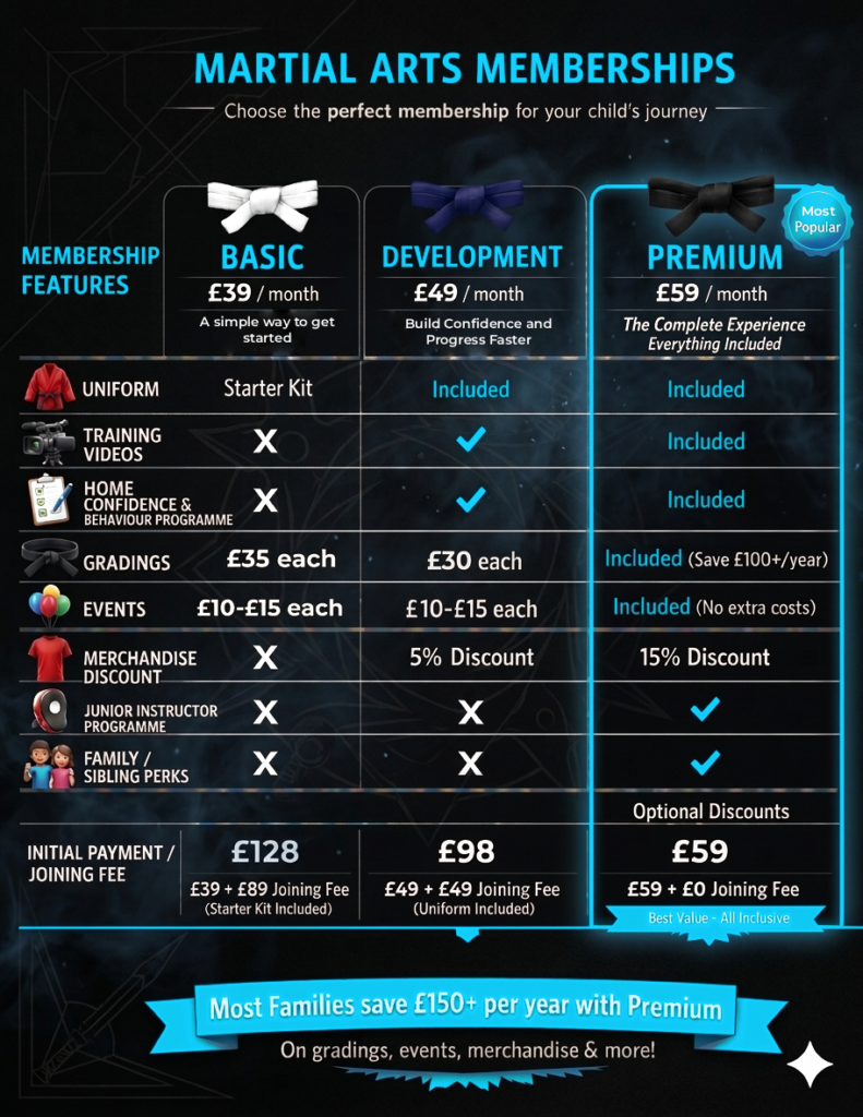 We keep things clear and straightforward so you always know exactly what you’re paying for. No hidden fees — just high‑quality martial arts training in a safe, structured environment.